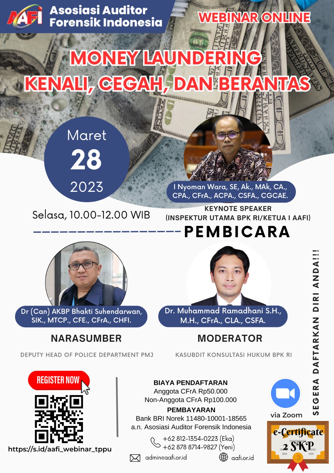 Asosiasi Forensik Auditor Indonesia (AAFI TEPOGI) mengundang Bapak/Ibu dalam Webinar Online dengan Tema MONEY LAUNDERING, KENALI, CEGAH, DAN BERANTAS
